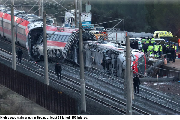 Spain train crash: स्पेन में भीषण हाई-स्पीड ट्रेन हादसा, 39 की मौत; सैकड़ों यात्री घायल