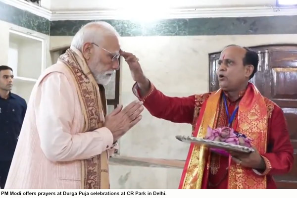 पीएम मोदी ने दिल्ली के सीआर पार्क स्थित दुर्गा पूजा समारोह में पूजा-अर्चना की