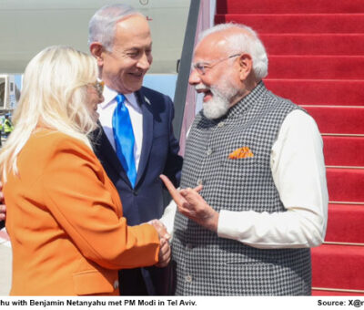 सारा नेतन्याहू (Sara Netanyahu) अपने पति और इज़राइली प्रधानमंत्री बेंजामिन नेतन्याहू (Benjamin Netanyahu) के साथ तेल अवीव (Tel Aviv) के बेन गुरियन एयर