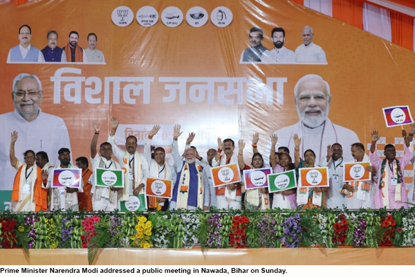प्रधानमंत्री ने आज दो रैलियों को संबोधित किया, एक आरा में और दूसरी नवादा में।