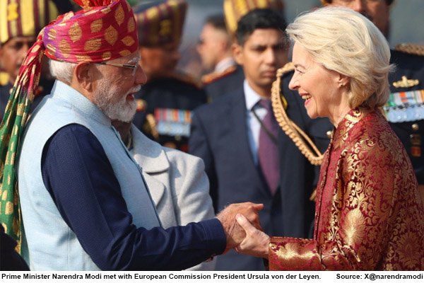 EU नेता उर्सुला वॉन डेर लेयेन (यूरोपीय आयोग की अध्यक्ष) और एंटोनियो कोस्टा (यूरोपीय परिषद के अध्यक्ष) गणतंत्र दिवस के मुख्य अतिथि के रूप में भारत में हैं (उन्होंने आज कर्तव्य पथ पर परेड में हिस्सा लिया)।