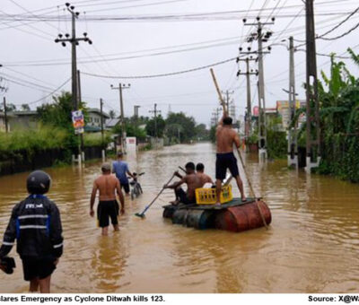 Read MoreDitwah Cyclone: श्रीलंका के प्रेसिडेंट अनुरा कुमारा दिसानायके ने शनिवार को आपदा राहत ऑपरेशन से निपटने के लिए इमरजेंसी की घोषणा की। दिसानायके ने इमरजें