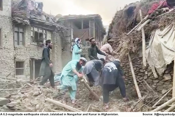 अफ़ग़ानिस्तान में तालिबान सरकार के प्रवक्ता ज़बीहुल्लाह मुजाहिद ने एक्स पर कहा कि भूकंप से पूर्वी प्रांतों में जान-माल का नुकसान हुआ है और बचाव कार्य जारी है।