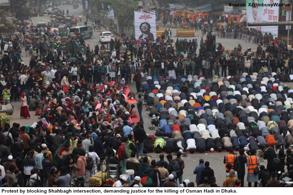 बांग्लादेश में राजनीतिक उथल-पुथल मची हुई है, और विरोध प्रदर्शन और हिंसा भी हो रही है, जब पूर्व बांग्लादेशी प्रधानमंत्री शेख हसीना के खिलाफ विद्रोह का नेतृत्व करने वाले इंकलाब मंच के नेता शरीफ उस्मान हादी की हत्या कर दी गई।
